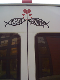 I'm currently at the Willington, CT Public Library awaiting the start of the talk by Michael Dowd. In the meantime, here's a picture of the back of his van: